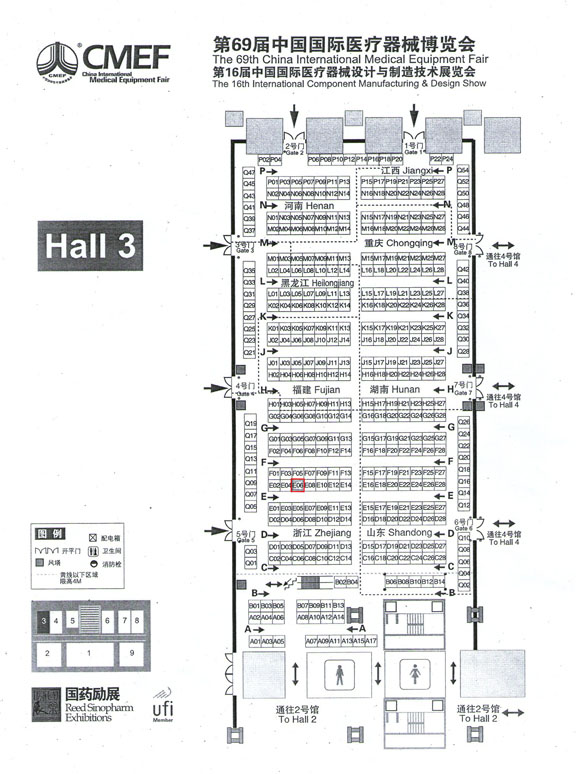 我公司將于2013年4月17日-20日參加在深圳舉行的第69屆中國醫(yī)療器械春季博覽會。展位位于3號館E06號 (H3-E06詳見附圖),公司熱誠歡迎新老客商與會業(yè)務接洽。