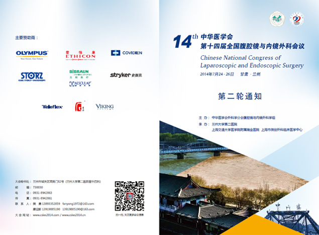 我公司將于2014年7月24日-7月26日作為主要贊助商之一參加在蘭州舉行的中華醫(yī)學會第14屆全國腹腔鏡與內(nèi)鏡外科會議,屆時我司將在會場設(shè)立特裝展臺。公司熱忱歡迎業(yè)內(nèi)同道到訪參觀并進行技術(shù)交流。