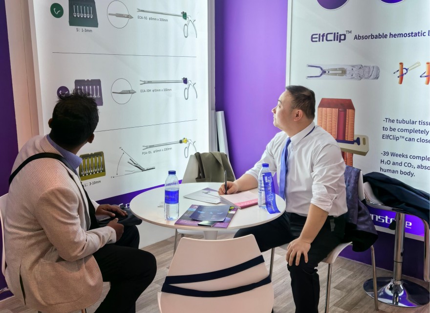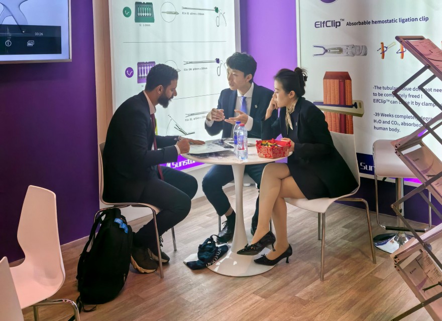 圣石科技此次展出的數(shù)款微創(chuàng)手術(shù)創(chuàng)新醫(yī)療器械產(chǎn)品,憑借其全新的產(chǎn)品設(shè)計理念,領(lǐng)先的精密工藝技術(shù)和卓越的性能,吸引了來自全球的目光。展位前人潮涌動,來自中東、歐洲、亞洲及非洲等地區(qū)的客戶和友商紛紛駐足,深入了解產(chǎn)品細節(jié)并洽談合作。
