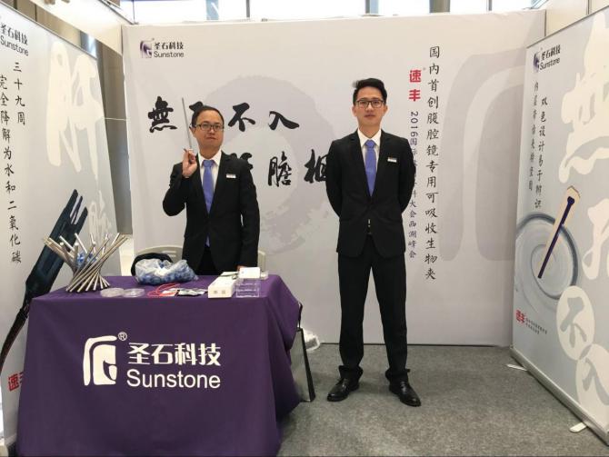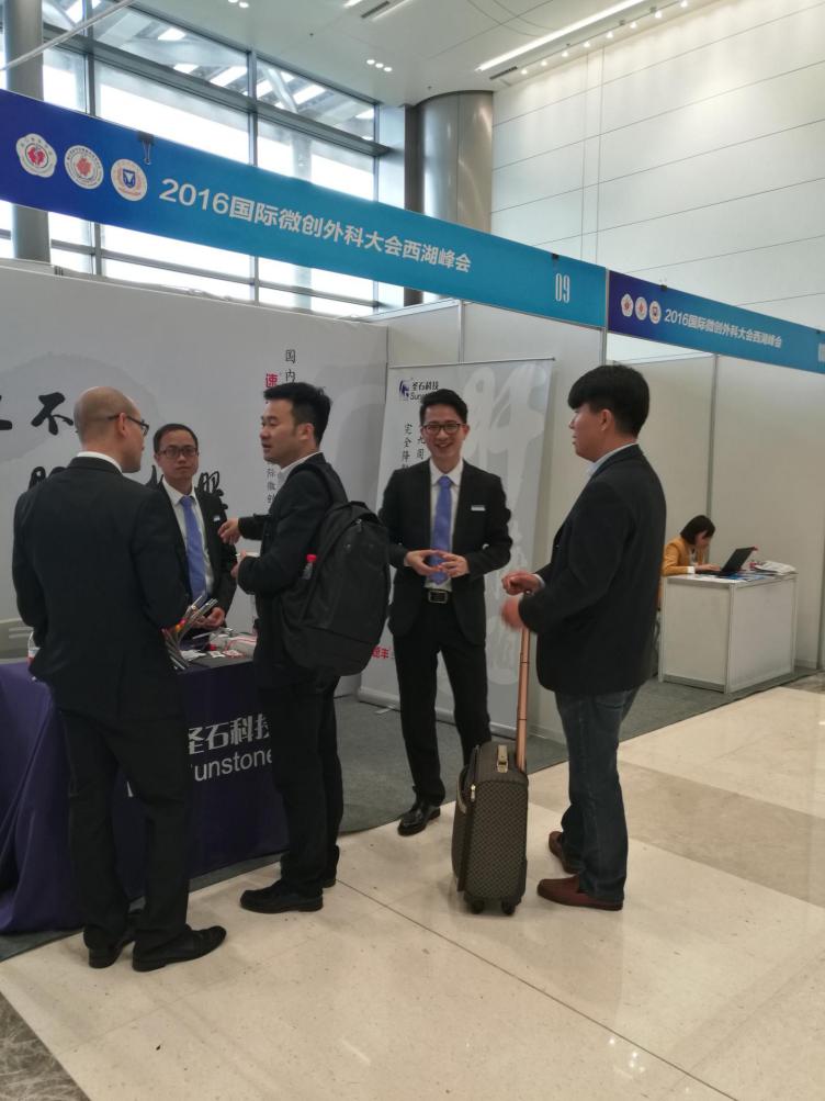 會議茶歇期間,我公司展位吸引了眾多專家醫(yī)師們的關(guān)注,其中有來自英國皇家英格蘭外科學(xué)院的專家代表前來了解我公司產(chǎn)品---速豐?可吸收止血結(jié)扎夾,現(xiàn)場我司工作人員欣然以嫻熟的英語為其做介紹與產(chǎn)品演示,我公司產(chǎn)品的特點(diǎn)及優(yōu)勢得到了英國皇家英格蘭外科學(xué)院專家的認(rèn)可與肯定!